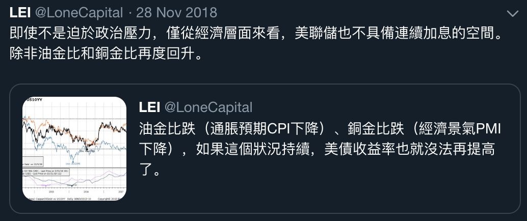 上面這條推文有可能會成為今年最值錢的一條信息,文中提到的去年11月底的那條推文也附上: