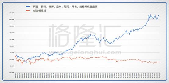 (今年以来创业板指数与中国核心互联网公司综合指数走势对比)